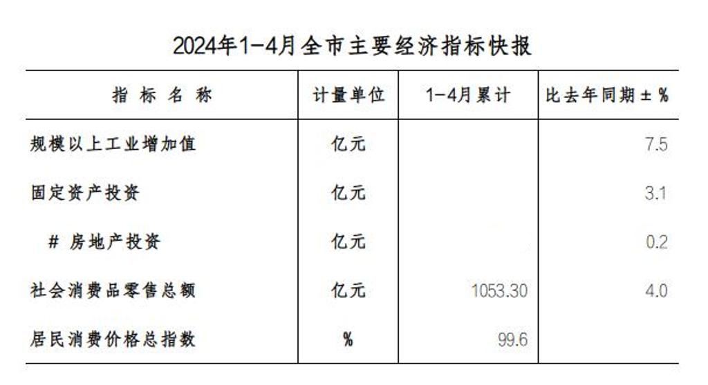 2024年1-4月全市主要经济指标快报