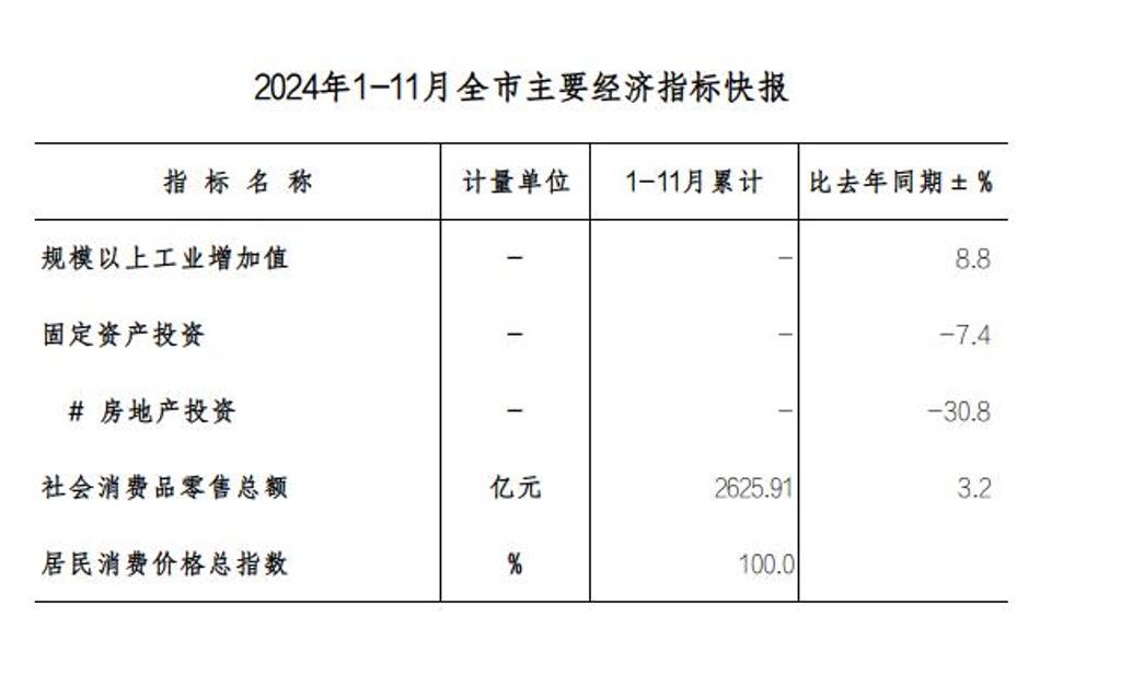 2024年1-11月全市主要经济指标快报
