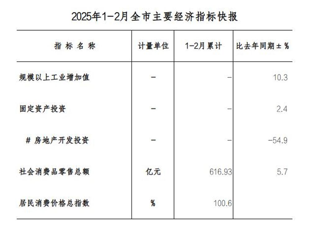 2025年1-2月全市主要经济指标快报