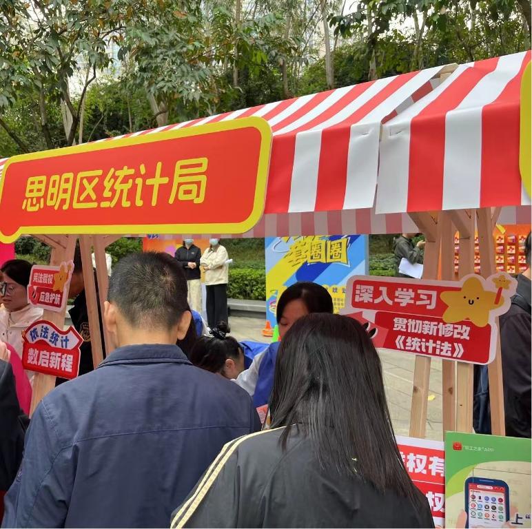 12月3日上午,思明区统计局在金榜公园开展思明区普法市集宣传活动,大力宣传贯彻习近平法治思想,弘扬宪法精神和统计法治精神,推动新修改《中华人民共和国统计法》深入人心。