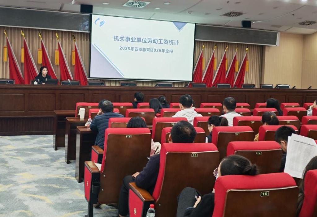 培训系统围绕三项重点内容展开:一是强化依法统计意识,明确统计法律责任与数据质量要求;二是详细讲解劳动工资统计报表的核心指标、统计云联网直报平台的操作方法,以及2025年四季报和2026年定报的填报规范与要点;三是明确各项工作的时间节点与进度安排。